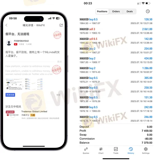 日前,一位投资者在WikiFX平台曝光栏目曝光了自己在“Trademax Global Limited”平台受骗的经历。