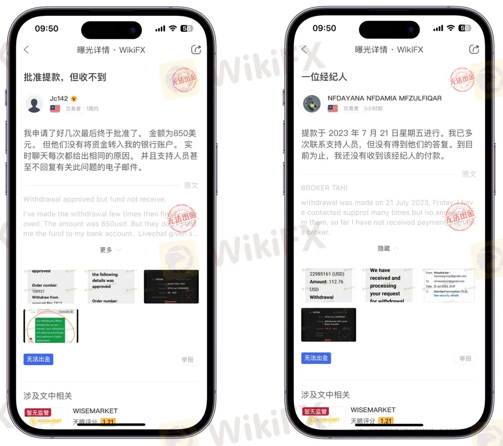 摘要:有多位投资者日前向WikiFX投诉“WISEMARKET”平台无法出金。
