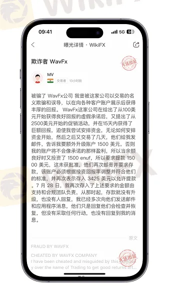 日前,一位印度的投资者“Manisha”女士向WikiFX投诉曝光WavFx平台存在欺诈行为,无法出金。