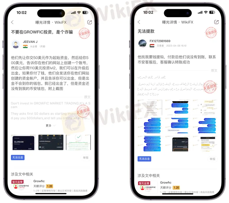 最近,多位投资者通过WikiFX投诉曝光交易平台Growfic疑似诈骗,拒绝投资者出金。