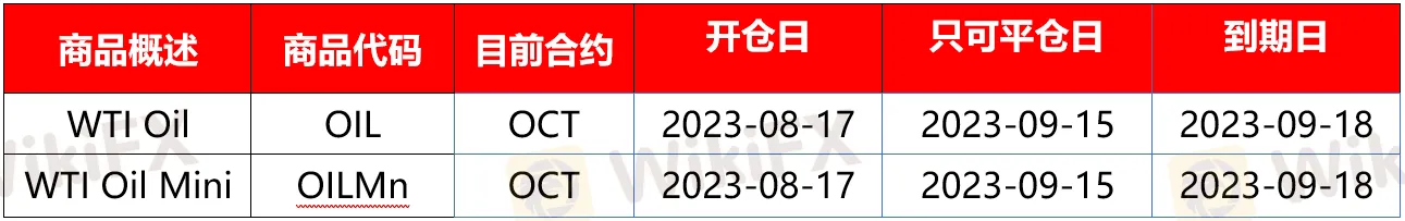 当前合约OIL-OCT、OILMn-OCT将于2023年9月15日交割(只可平仓),建议在此之前手动平仓。