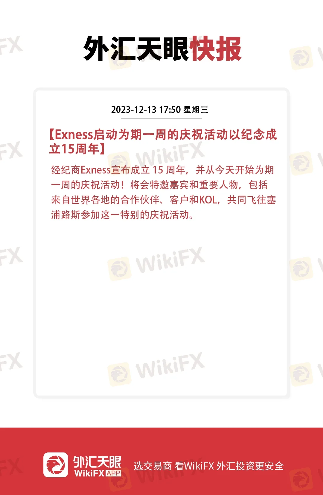 Exness 启动为期一周的庆祝活动以纪念成立15周年