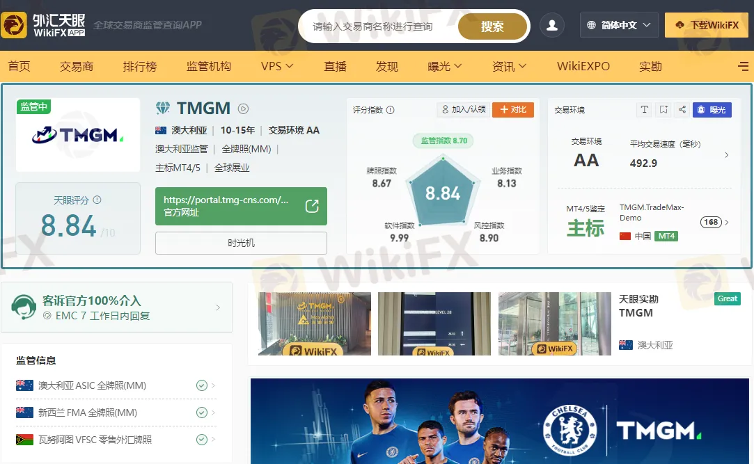 通过外汇天眼查询可知,TMGM受到澳大利亚证券和投资委员会(ASIC)、新西兰金融市场管理局(FMA)和瓦努阿图金融服务委员会(VFSC)监管,持有澳大利亚证券和投资委员会(ASIC)全牌照(MM)、新西兰金融市场管理局(FMA)全牌照(MM)以及瓦努阿图金融服务委员会(VFSC)零售外汇牌照。