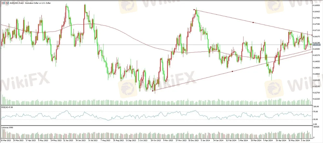 AUD/USD处于盘整三角形态中
