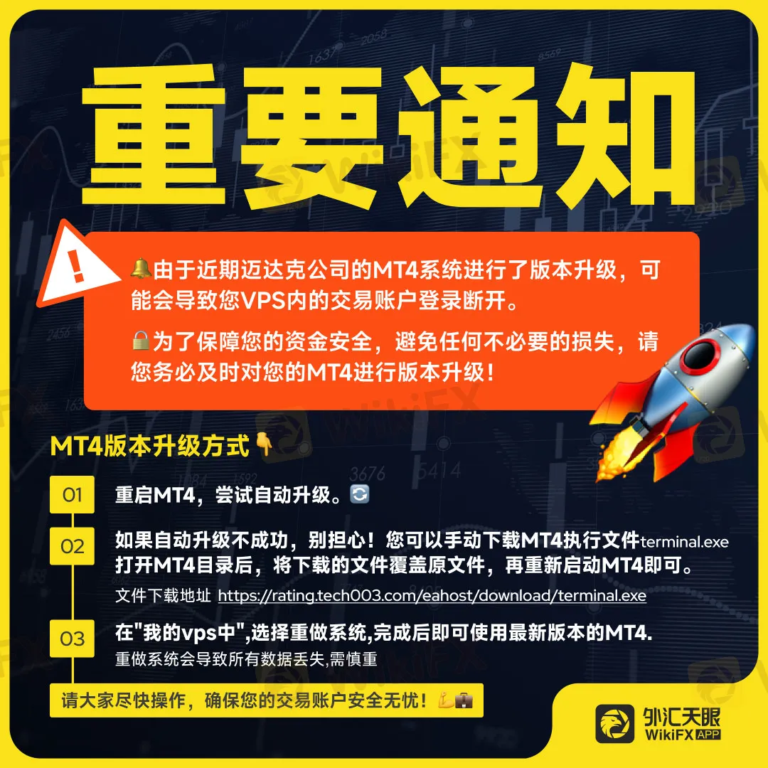 重要通知:天眼云VPS用户请及时升级更新MT4!