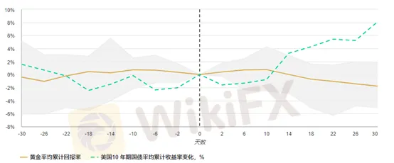 (图一:黄金回报率与美国10年期国债走势 来源:世界黄金协会)
