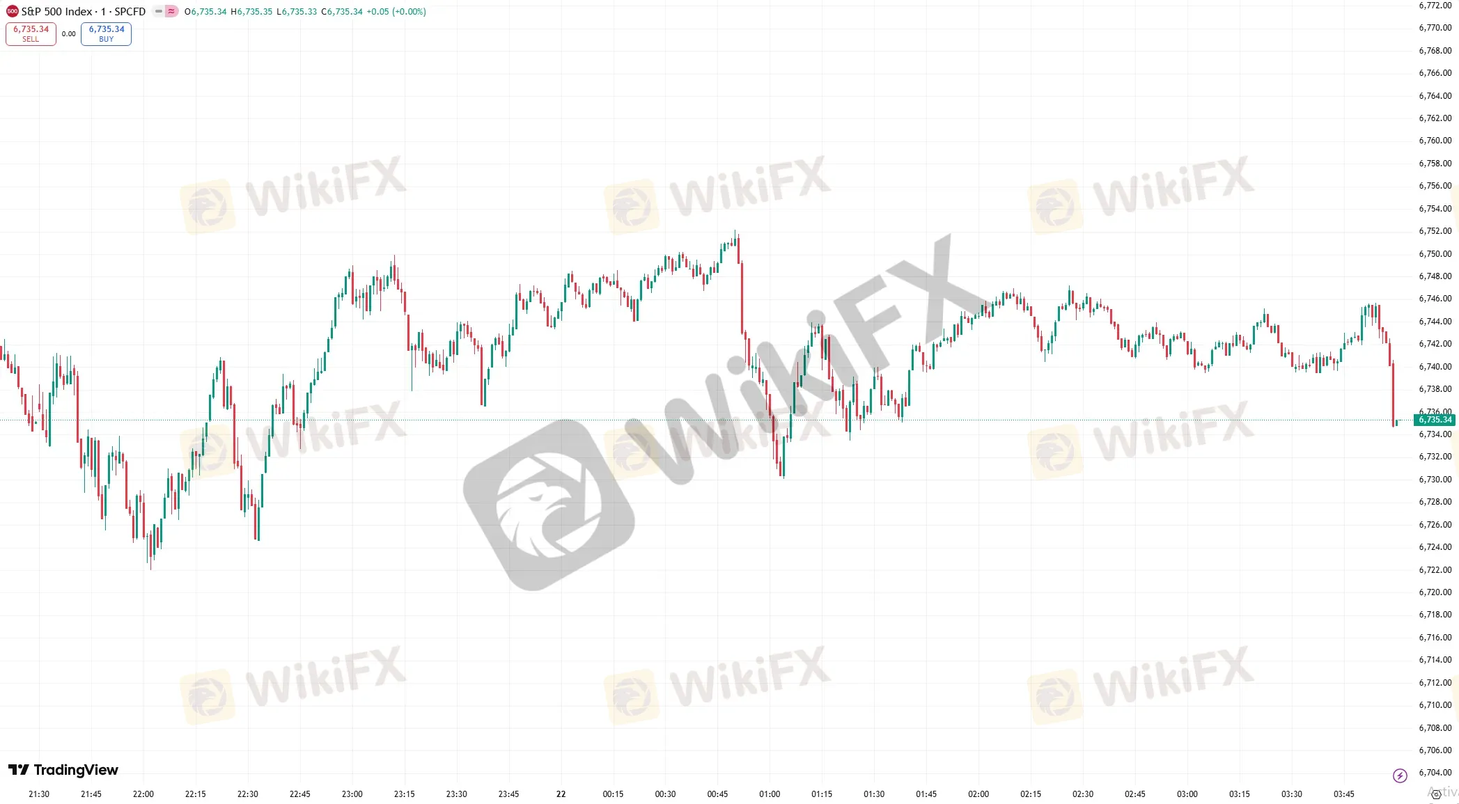 标普 500 指数,涨 0.22 点,报 6735.35 点