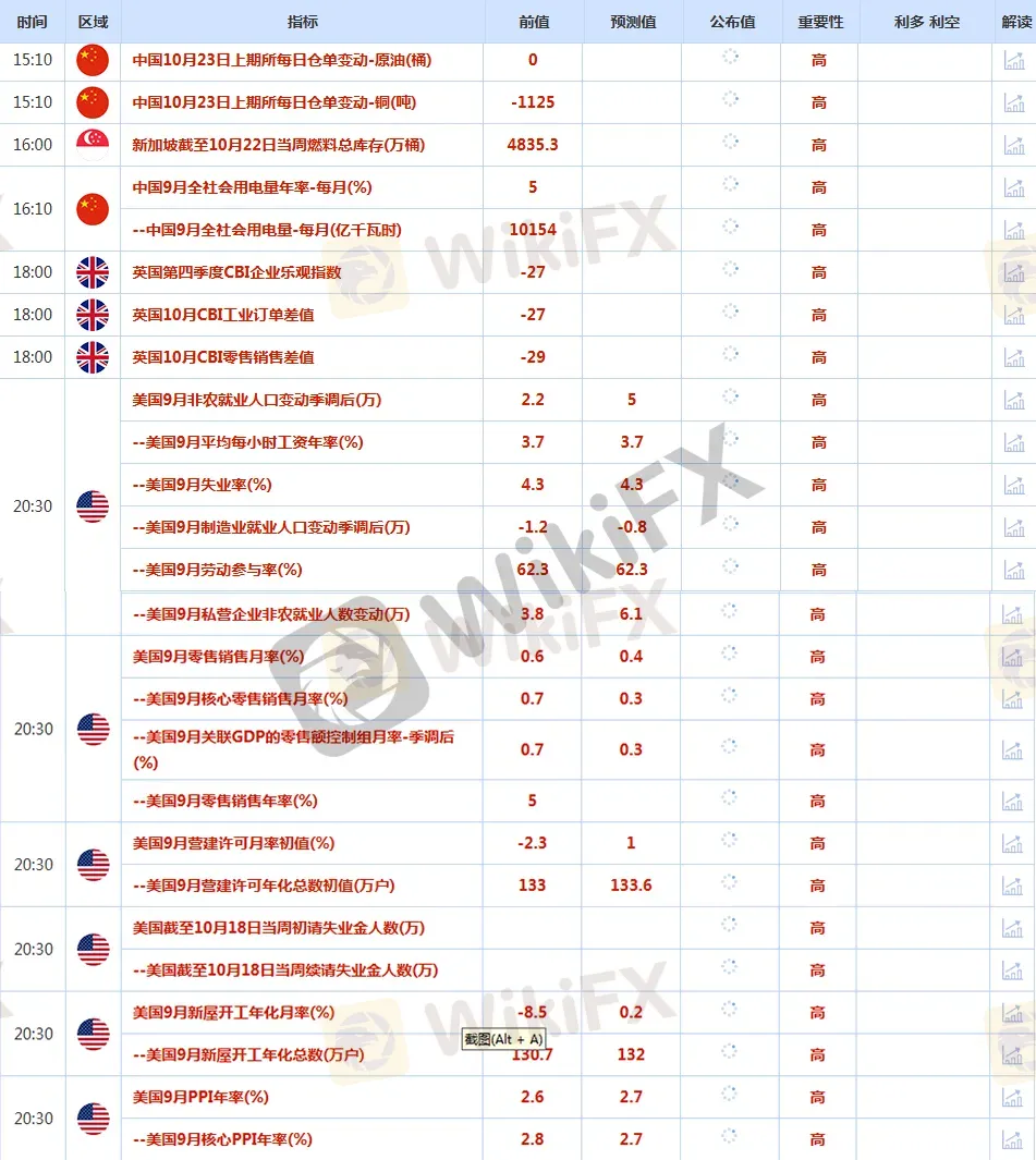 摘要:CWG Markets市场资讯2025年10月23日(周四):汇讯摘要:周三,美元指数连涨三日后升势暂歇,盘中一度升破99大关,最终收跌0.08%,报98.89,创一周新低。美债收益率低位盘整,基准的10年期美债收益率最终收报3.9510%,对美联储政策利率敏感的2年期美债收益率收报3.4510%。因国际贸易局势担忧情绪降温,为期俄乌有望迎来和平,周三现货黄金盘中一度下跌近3%至4004.46美元