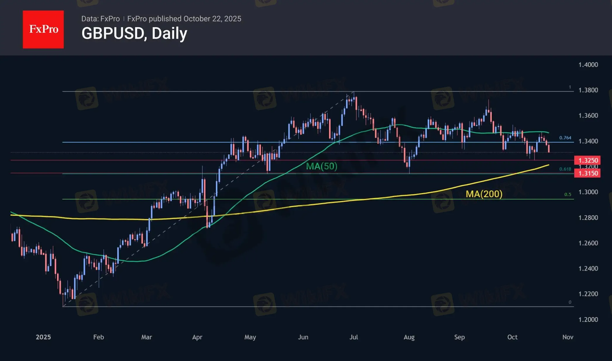 数据公布后,英镑兑美元汇率下跌0.5%,跌至七日低点1.3320。自月初以来,英镑兑美元(GBPUSD)始终受制于50日均线压力,且该均线正呈现逐步下行反转态势。自4月以来,英镑每次下探至1.3250附近均能获得支撑,该价位既是近期局部低点密集区,也恰好与200日均线形成共振支撑。若有效跌破这一关键位,将预示美元回调趋势终结;而一旦跌破1.3150整数价位,英镑将突破技术性回调区间,市场走势可能急剧加速,届时“美元贬值”的市场预期将彻底从讨论焦点中消失。