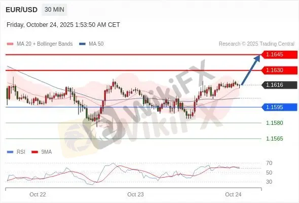 交易策略: 在1.1595之上,看涨,目标价位为1.1630,然后为1.1645。