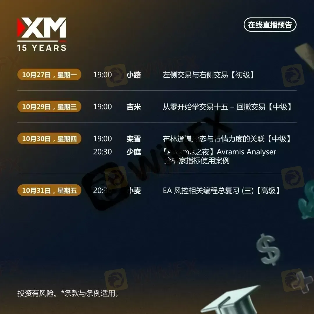 XM中文直播课堂带你紧跟市场节奏,每周一至周五,1小时+实战内容,提升你的交易实战力与程序化操作技能!