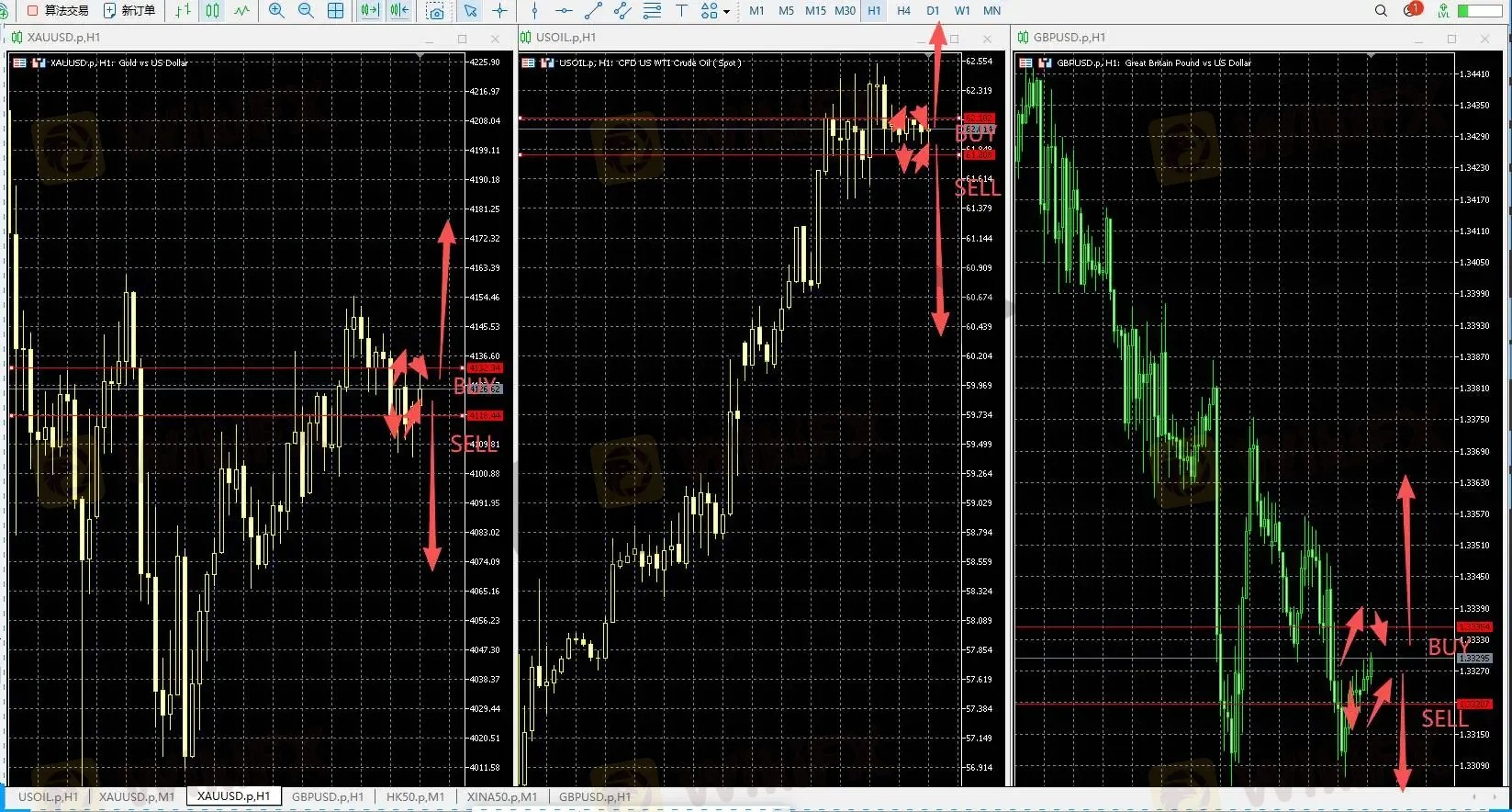 1.以时间为优先依次逐样商品执行下单建仓,理论上除了美国非农议息特殊日外其它时间各个商品触发变盘时刻并不统一,有足够的时间关注策略中每个商品的建仓触发点是否符合下单要求。