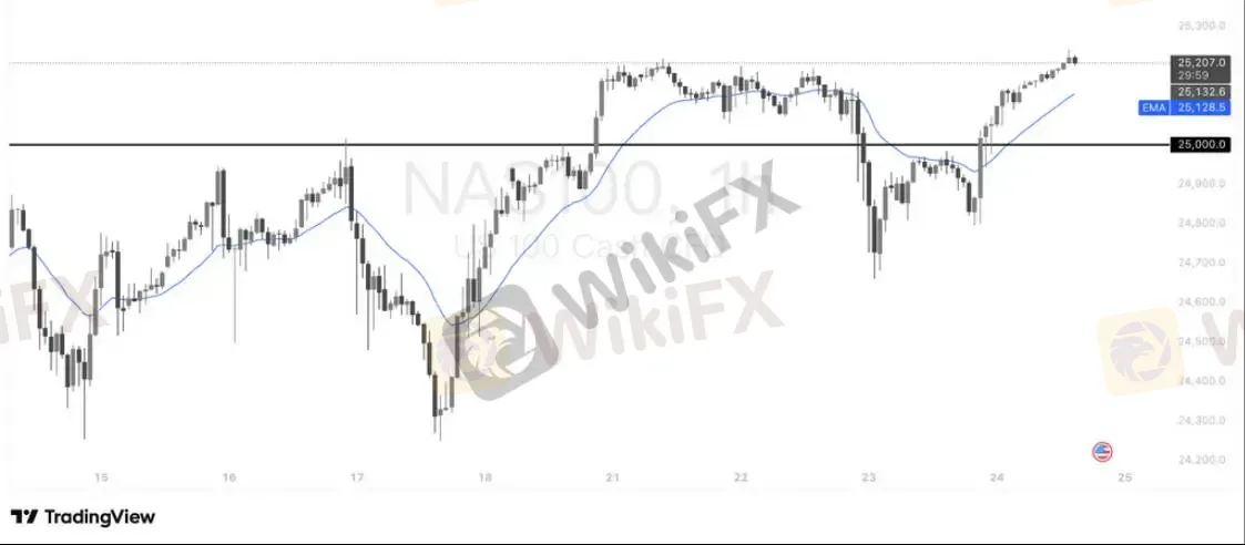 Nas100企稳25000关口,多头动能回升有望延续反弹