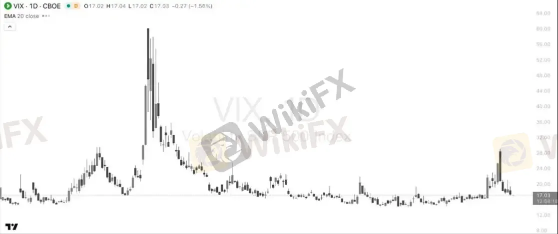 VIX大幅回落至17,市场恐慌情绪降温助推风险资产反弹