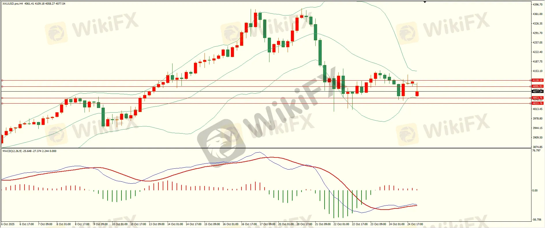 黄金上周五触及第一阻力承压下行,欧盘时段回落至前支撑震荡上行,日线报收上下影线小阴线,从收盘来看,短线的震荡尚未结束,结合4H来看,布林中轨偏下,MACD零轴下方运行,日内上方首要阻力4095,第二阻力4118,下方支撑4053,4033-35,第一阻力在没有收复前短线有望回测第一支撑。
