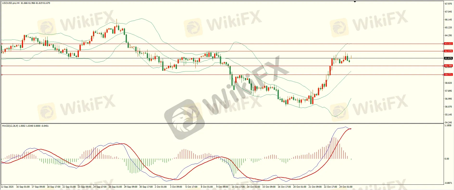 原油上周五先扬后抑,盘中触及第一阻力冲高回落,日线报收小阴线,前高阻力保持,短线预防震荡再现,从4H来看,布林中轨偏上,MACD零轴上方运行,日内下方首要支撑60.75第二支撑59.70,上方阻力62.45,63.30,保持在第一支撑上方短线有望回测第一阻力。
