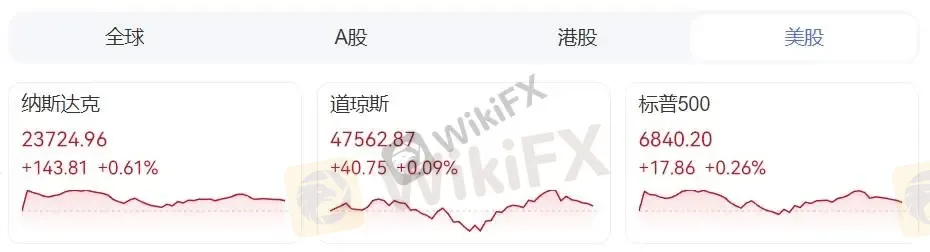 10月31日,美股三大指数收高,标普连涨六个月,纳指连涨七个月。道琼斯工业平均指数收涨40.75点,涨幅0.09%,报47562.87点,10月份累涨2.51%,连涨六个月。标普500指数收涨17.86点,涨幅0.26%,报6840.20点,本周累计上涨0.71%,10月份累涨2.27%,连续第六个月上涨。纳指收涨143.813点,涨幅0.61%,报23724.957点,10月份累涨4.70%,连涨七个月。