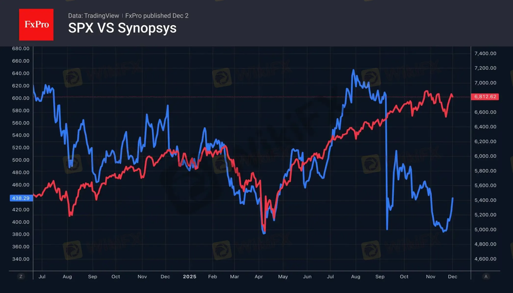 对人工智能(AI)泡沫的担忧导致 11 月股市出现回调,但随着恐慌情绪消退,股市迅速大幅反弹,科技行业的利好消息进一步为其提供支撑。例如,英伟达(NVIDIA)宣布 20 亿美元芯片研发投资的消息,直接推动了软件制造商新思科技(Synopsys)的股价上涨。