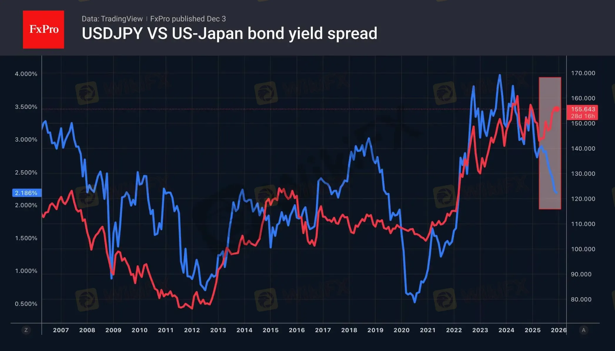 投资者正押注于货币政策分歧带来的机会。市场预计美联储到2026年将降息至3%,而日本央行则预测将加息至1.25%。随着两国债券收益率利差收窄,明年外汇市场上日元将占据优势。