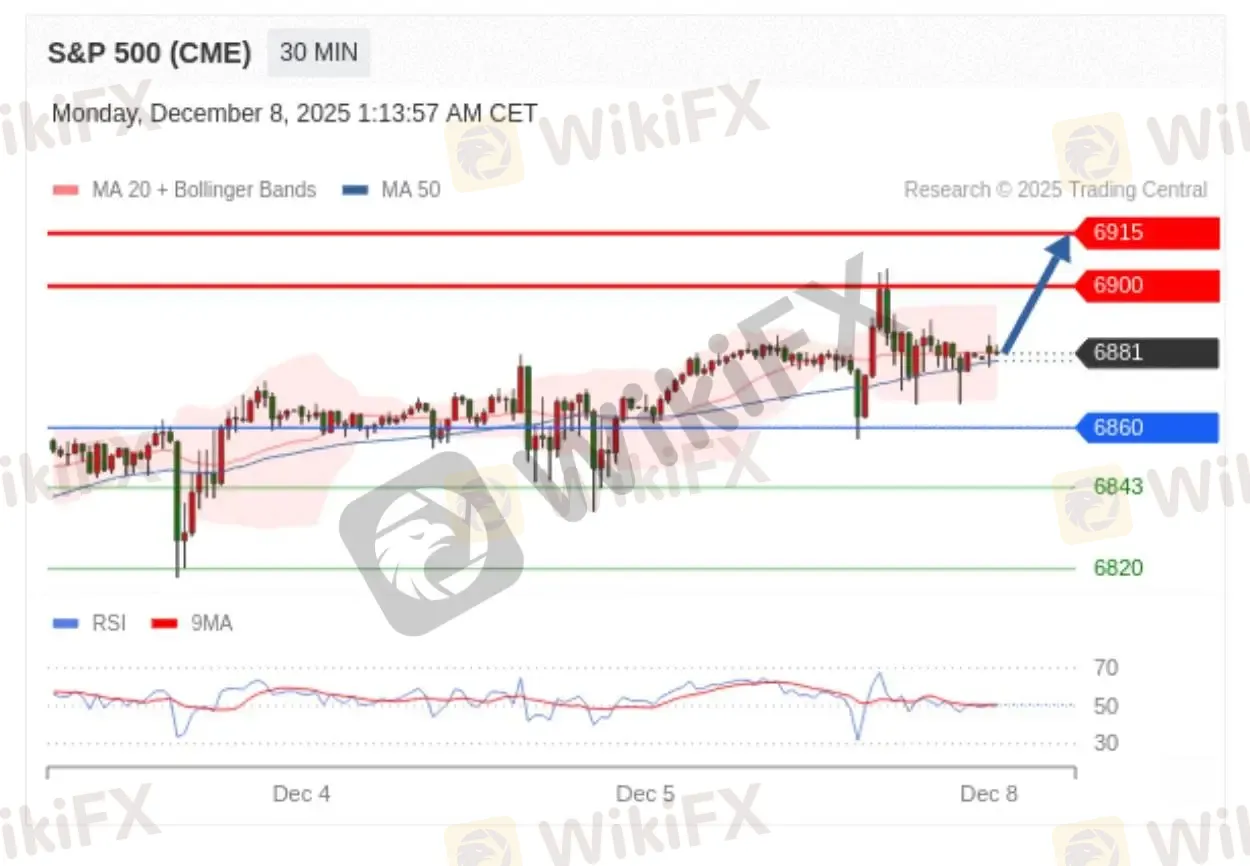在 6860 之上,看涨,目标价位为 6900 ,然后为 6915 。