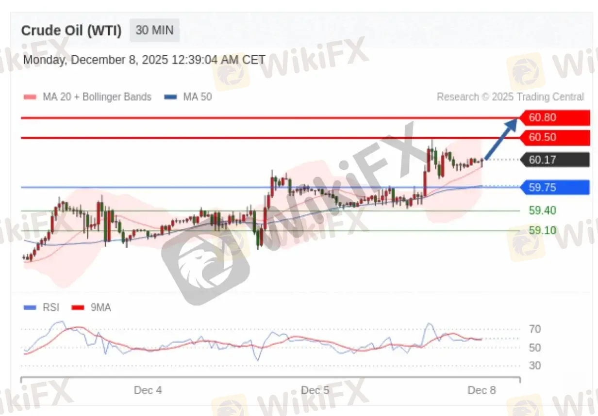 在 59.75 之上,看涨,目标价位为 60.50 ,然后为 60.80 。