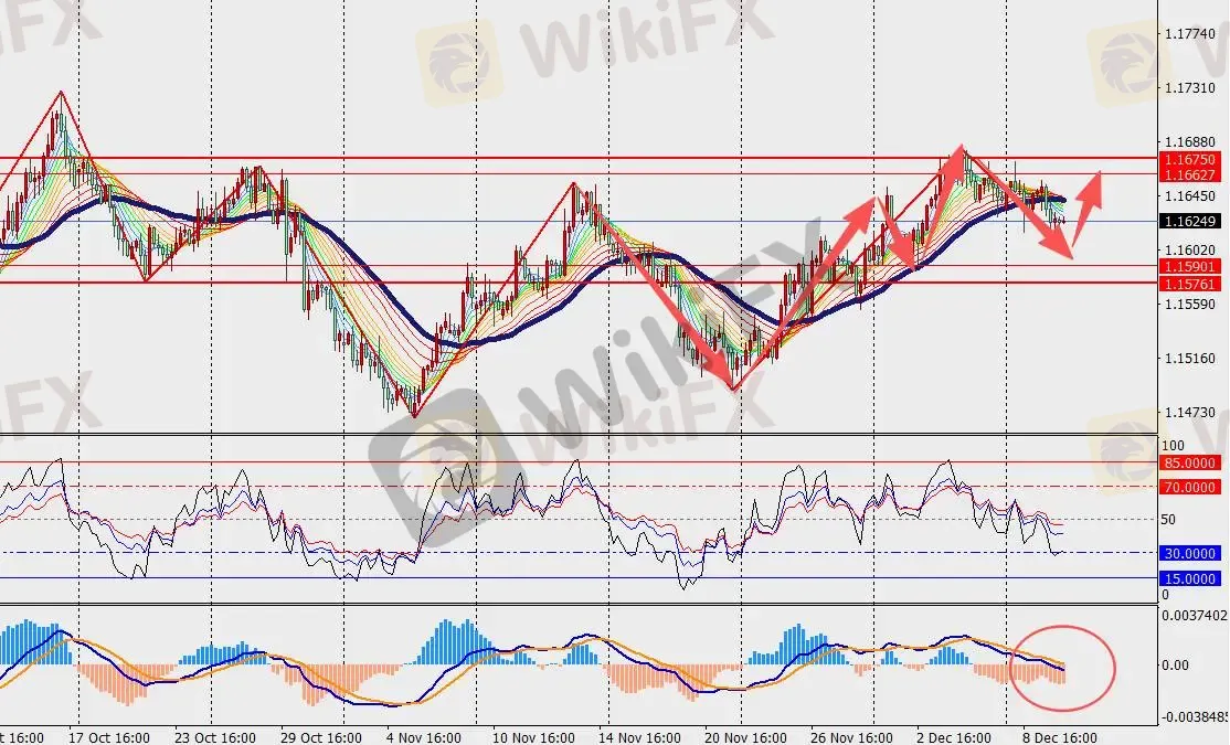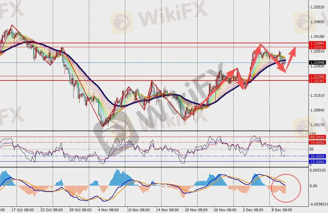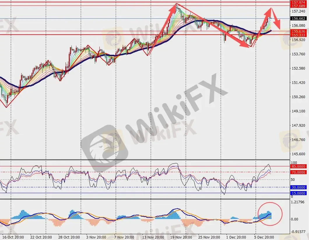 技术面:美元兑日元H4级别持续反弹,并在48日多空分界线上方运行。另一方面,MACD双线和量能柱在零轴附近缩量。利率互换交易表明,投资者认为日本央行在12月19日为期两天的会议结束时加息的可能性为91%。
