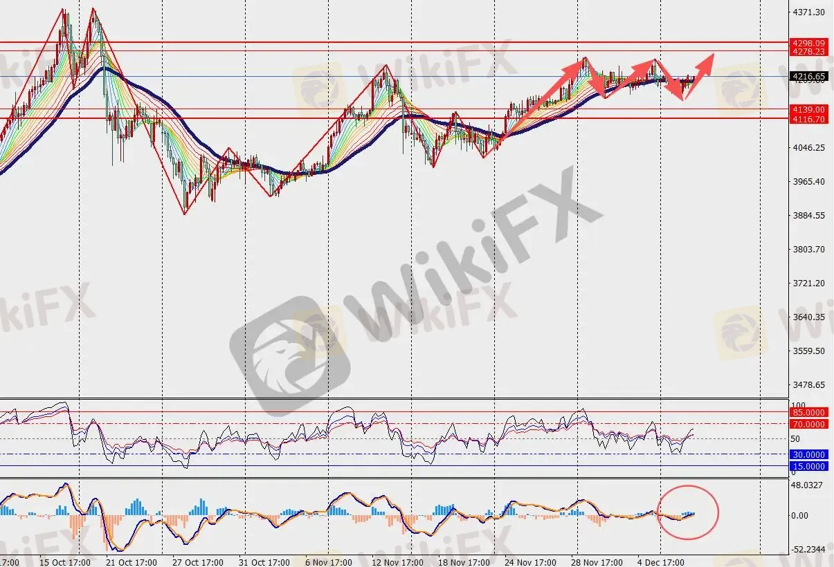 基本面:美联储的货币政策始终是黄金市场的重要风向标。此次为期两天的FOMC会议将于12月10日结束,市场普遍押注本周将降息25个基点,概率高达87.4%。这种乐观预期吸引逢低买盘支撑金价,因为降息通常会降低持有黄金的机会成本,推动资金流入贵金属领域。