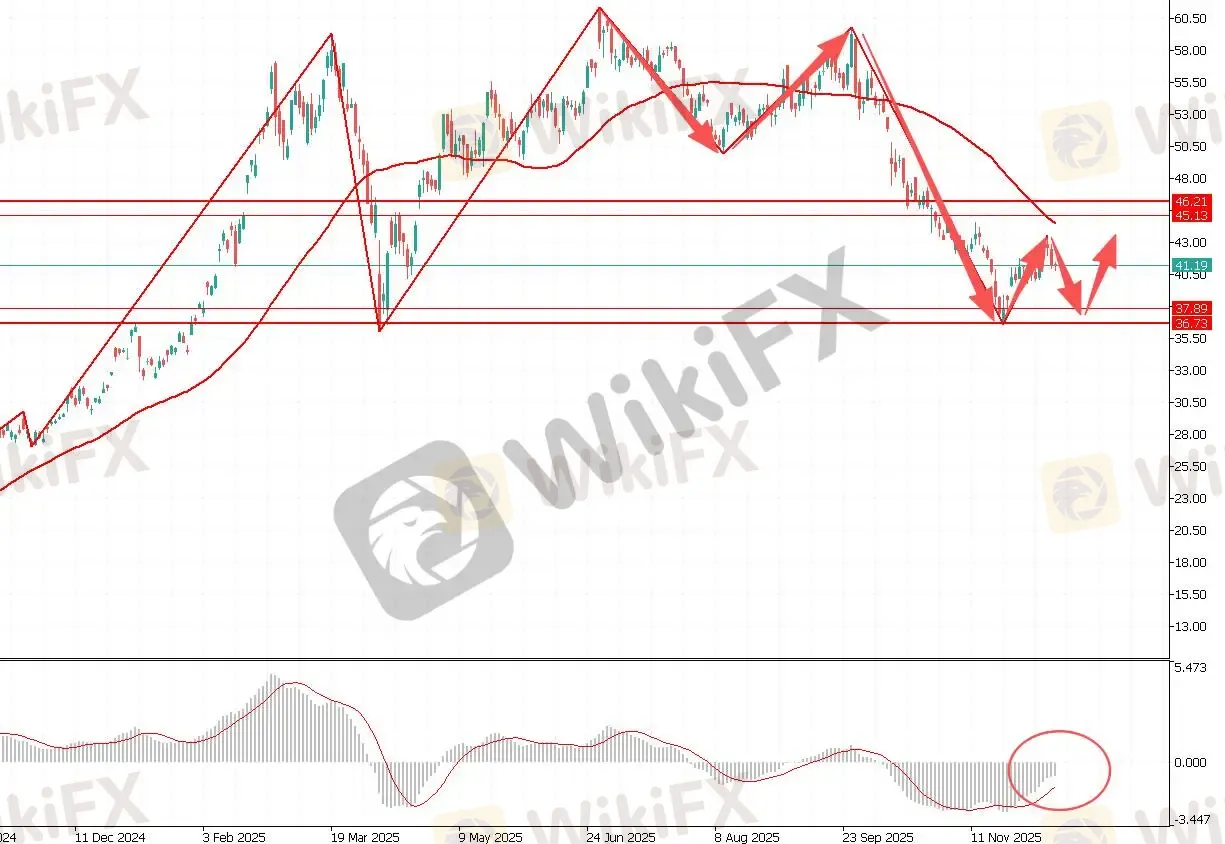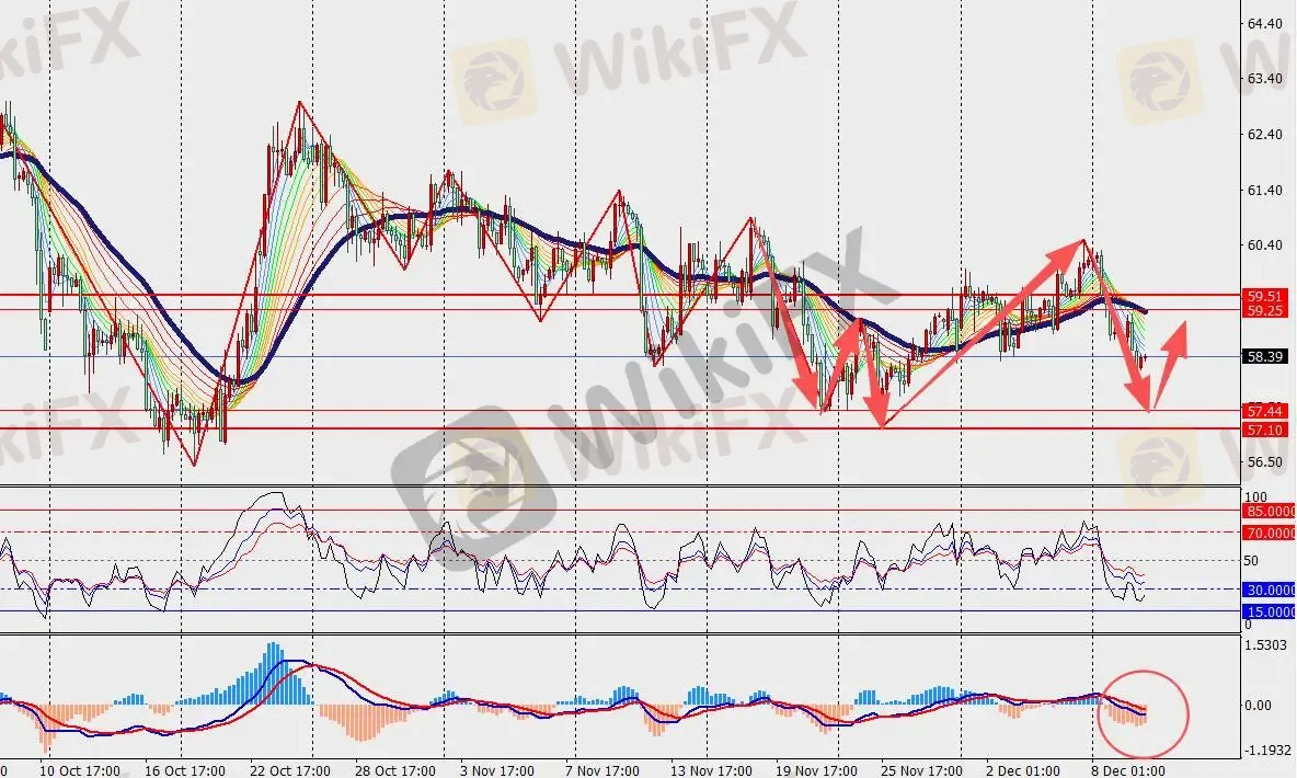 技术面:原油H4级别震荡回落,并在48日多空分界线下方运行。然而,MACD双线和量能柱在零轴附近逐步收敛。伊拉克增产强化了供应走向宽松的预期,另一方面,围绕俄乌的冲突动态仍可能触发突发性供给扰动,使风险溢价维持不稳定状态。