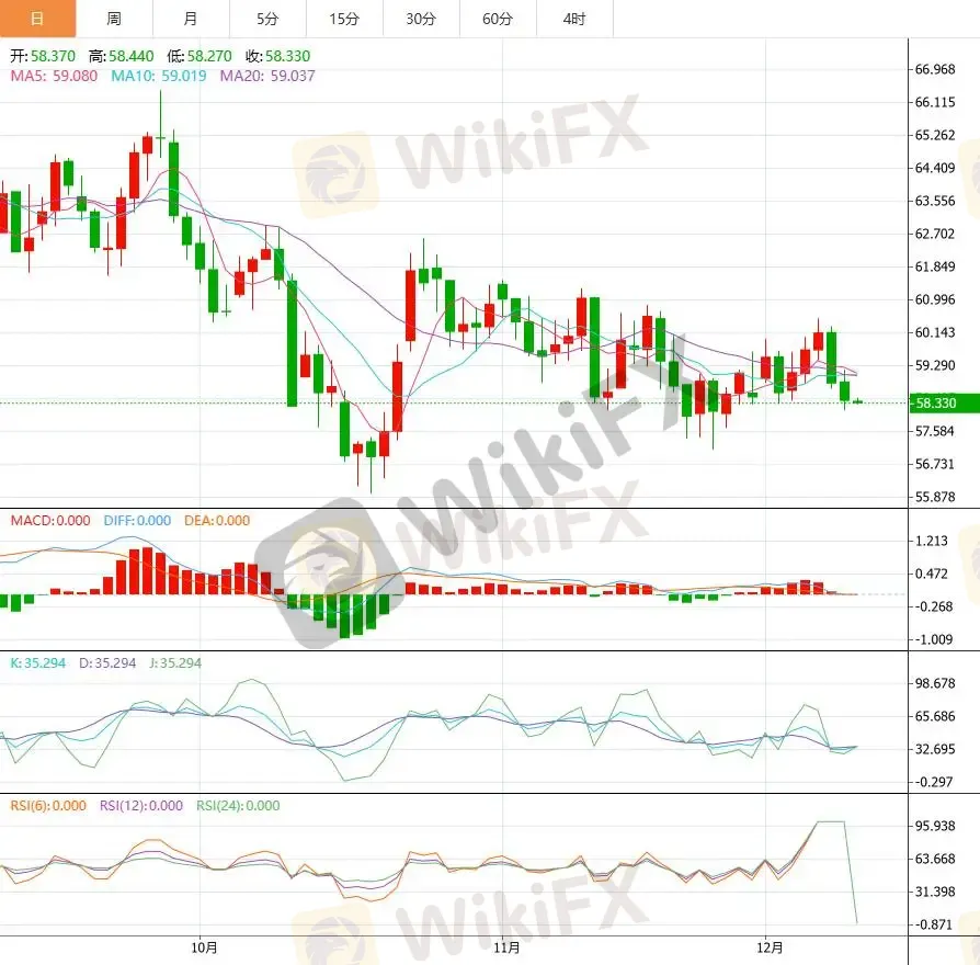 摘要:WTI 原油在周三亚洲时段交投于 58.40 美元附近,市场情绪在强劲美元与供应恢复的双重压力下趋于谨慎。美国发布的最新就业岗位数据明显好于预期,使美元出现阶段性反弹,直接削弱以美元计价的大宗商品价格表现。美元获得数据支撑,对油价构成压制从美国劳工统计局发布的最新 JOLTS 报告来看,9 月和 10 月职位空缺分别达到 765.8 万和 767 万,均高于市场预期,显示美国劳动力市场仍具韧性。这