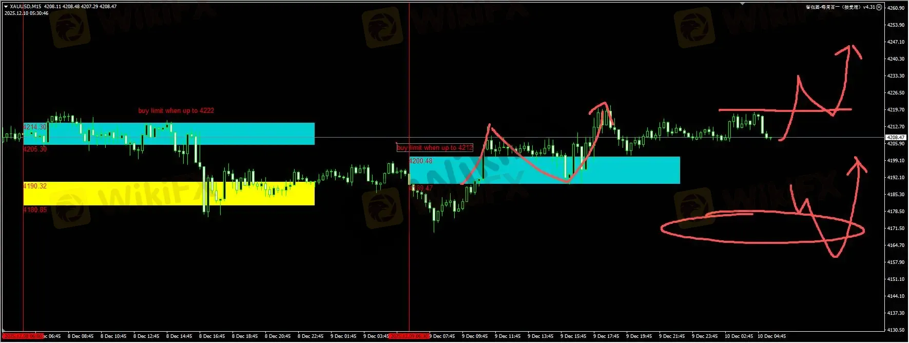 黄金:我们插件昨天提醒的蓝色区域,在突破至4212后挂buy limit,表现还算比较符合预期。日内将迎接美联储会议的考验,技术面上收复4225/30应当继续捕捉动能突破后回踩的信号;另外,为了防止鹰派降息的言论,下方4170/80扫流动性低买的信号继续补充一次。详细位置请咨询插件。