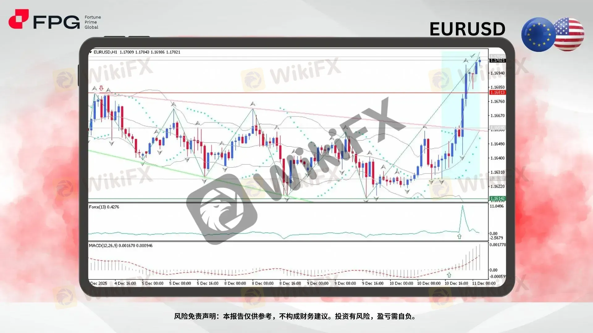 当前行情:EURUSD 在 H1 时间框架中目前位于 1.1702 附近,成功突破此前下降通道后呈现强劲上行动能。上涨由技术突破与波动性放大共同驱动。