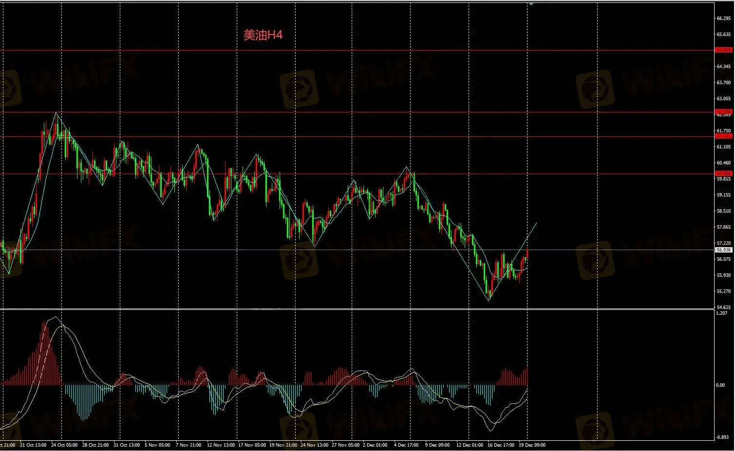 H4图表看空,短期空头持续与否的关键是否上破57.5,如上破空头持续等待,不建议多头介入。
