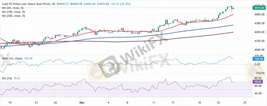 受新闻影响,XAU/USD 跌至 4,450 美元附近,但尘埃落定后恢复上涨,截至发稿时交易价格在 4,480 美元左右。