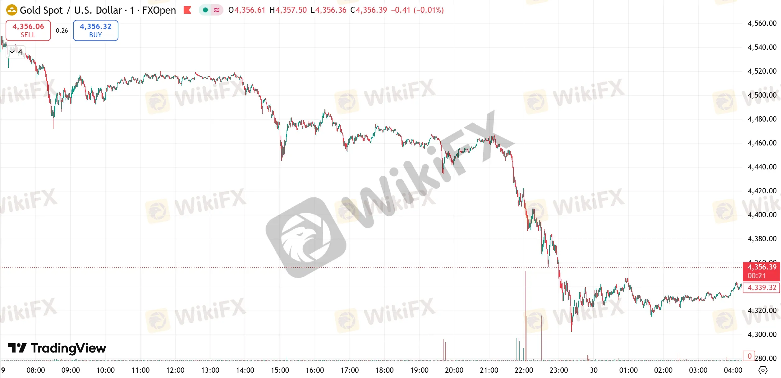 现货黄金周一大跌 4.5%,报每盎司 4330.79 美元;美国2月期金下跌 4.6%,报 4343.60 美元。铂金与白银跌幅更为显著,现货铂金重挫 14.5% 至 2096.53 美元,现货白银急跌 9.5%至 71.66 美元,现货钯金也暴跌 15.9% 至 1617.47 美元。所有贵金属均在近期攀升至历史或多年高位后出现回调。