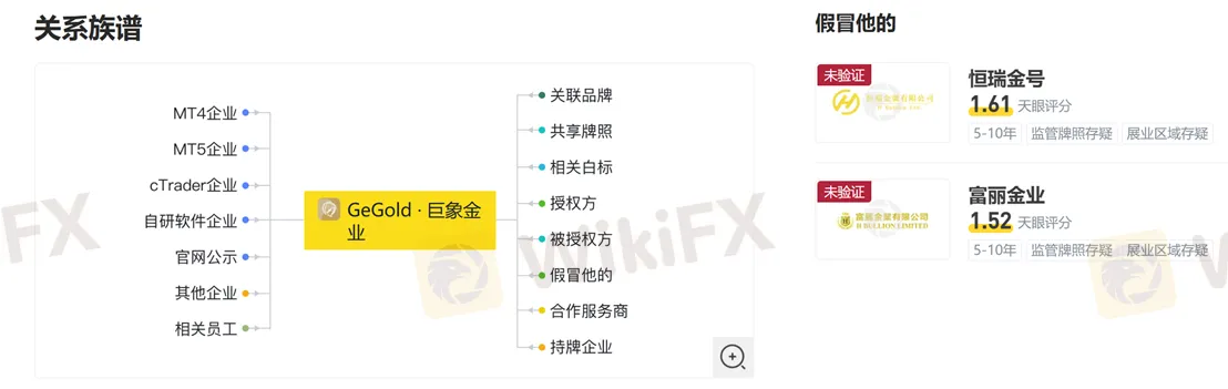 外汇天眼收录的监管信息证明文件以及【关系族谱】等信息显示,117号行员早期的两个平台分别为恒瑞金号和富丽金业。这两个平台属于同一团队运营,目前尚不确定与巨象金业是否为同一伙人。