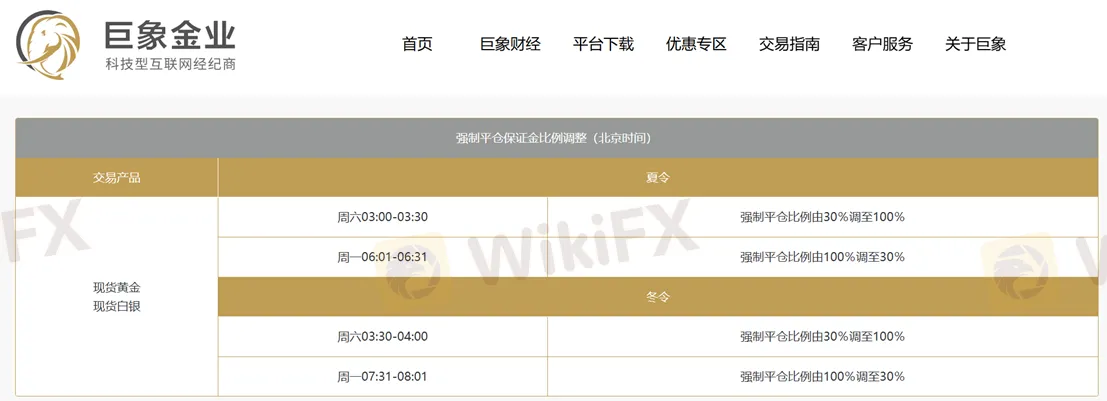金融机构调整保证金比例比较常见,调整强平线的并不多(尽管二者本质上差异不大)。外汇平台、贵金属交易平台临近节假日/周末调整强平线比例更少。为什么巨象金业这么干?
