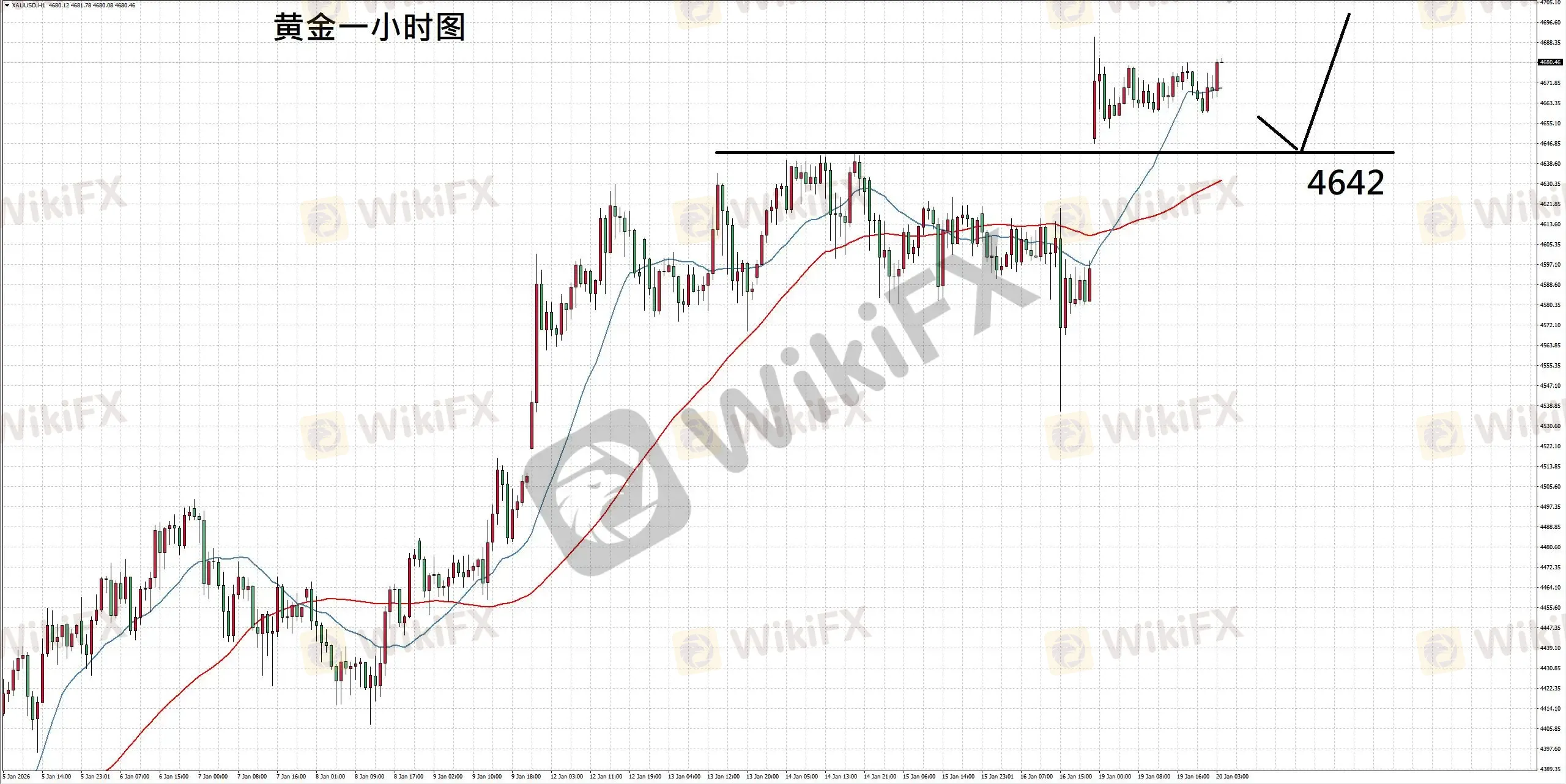 摘要:【基本面分析】昨日美国因节假日提前休市,黄金交投同样清淡,走势整体涨跌互见。而依近期基本面来看,美国为了购入格陵兰岛,宣布2月起对反对购岛提议的欧盟国家课征关税,而法国与德国也表示将对美国的威胁强烈回应,此举导致地缘政治再度紧张,为黄金持续带来支撑。【技术分析】黄金一小时图,走势高低点向上移动并刷新短线高点,反应买盘仍较强势;如后续回落未击破前期支撑,则走势或继续向上,故建议短多操作。操作建议:建