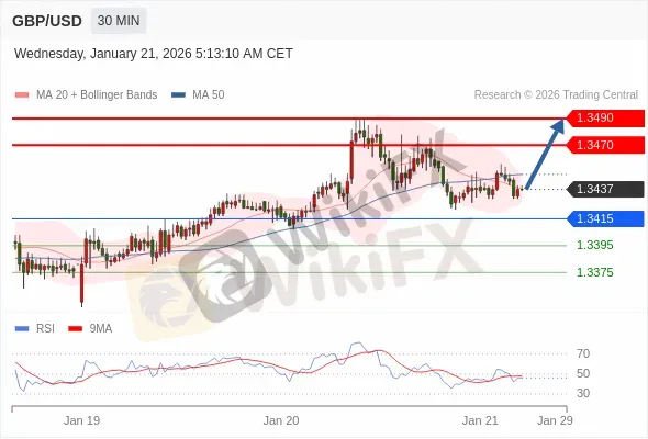 在 1.3415 之上,看涨,目标价位为 1.3470 ,然后为 1.3490。