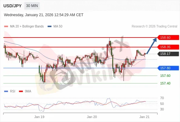 在 157.80 之上,看涨,目标价位为 158.35 ,然后为 158.60。