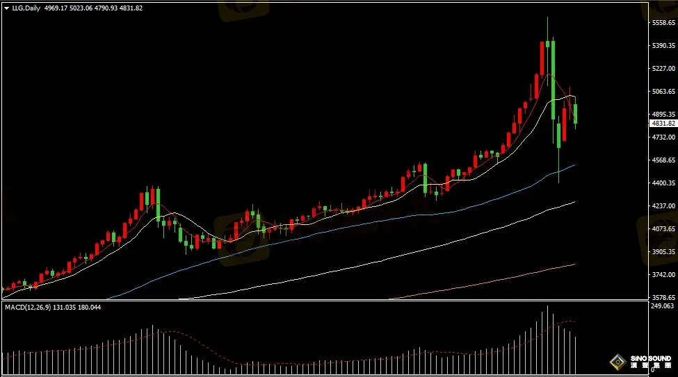 昨晚现货黄金短线盘整后快速下跌回落,金价回吐日内大部分涨幅,最低至4854.61美元/盎司,与日高5091.72美元/盎司相比,日内最大振幅达237美元,最终报收4964.45美元/盎司,涨幅收窄至0.58%;现货白银同样冲高回落,最终报收88.063美元/盎司,收涨3.68%。