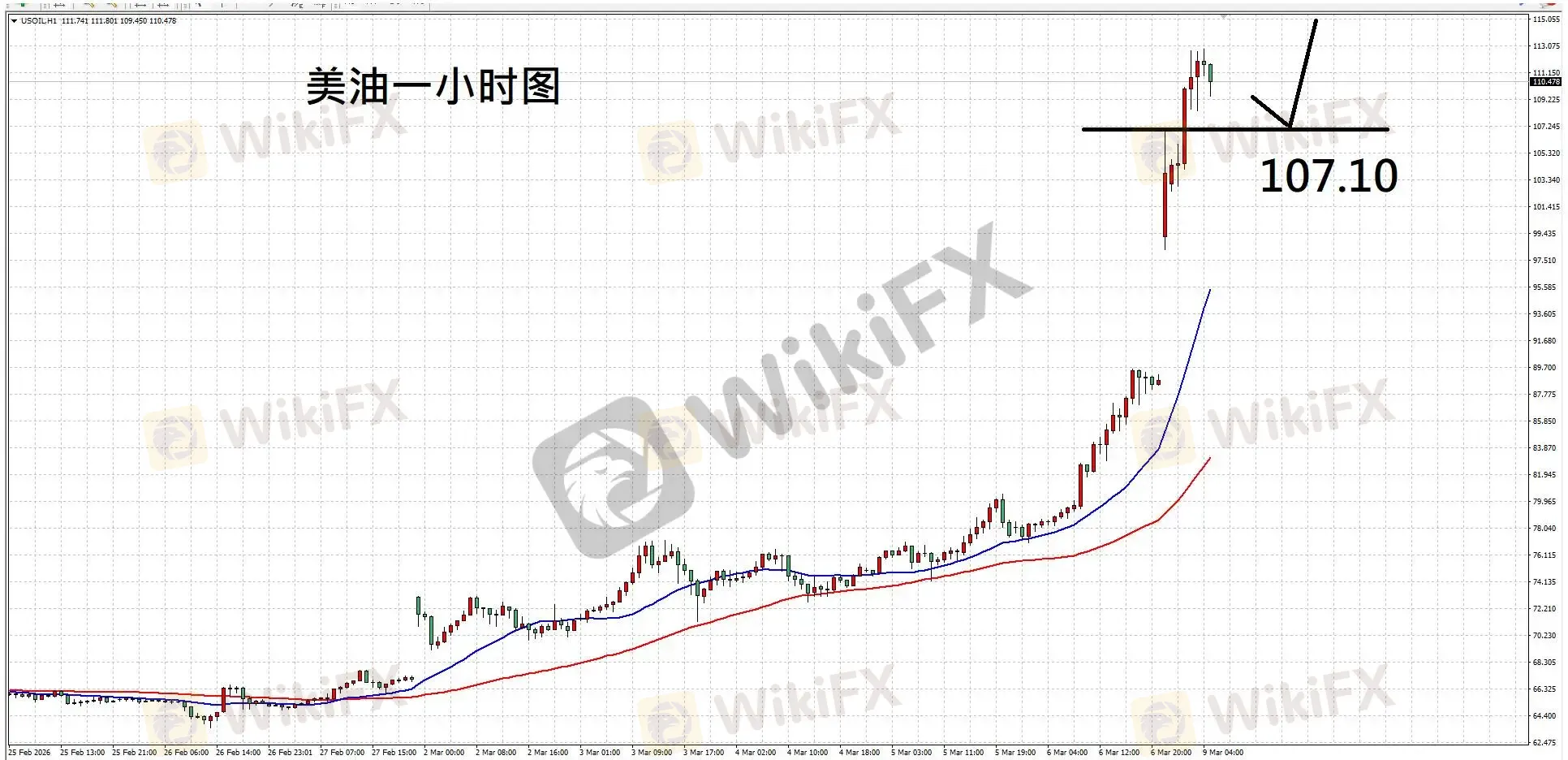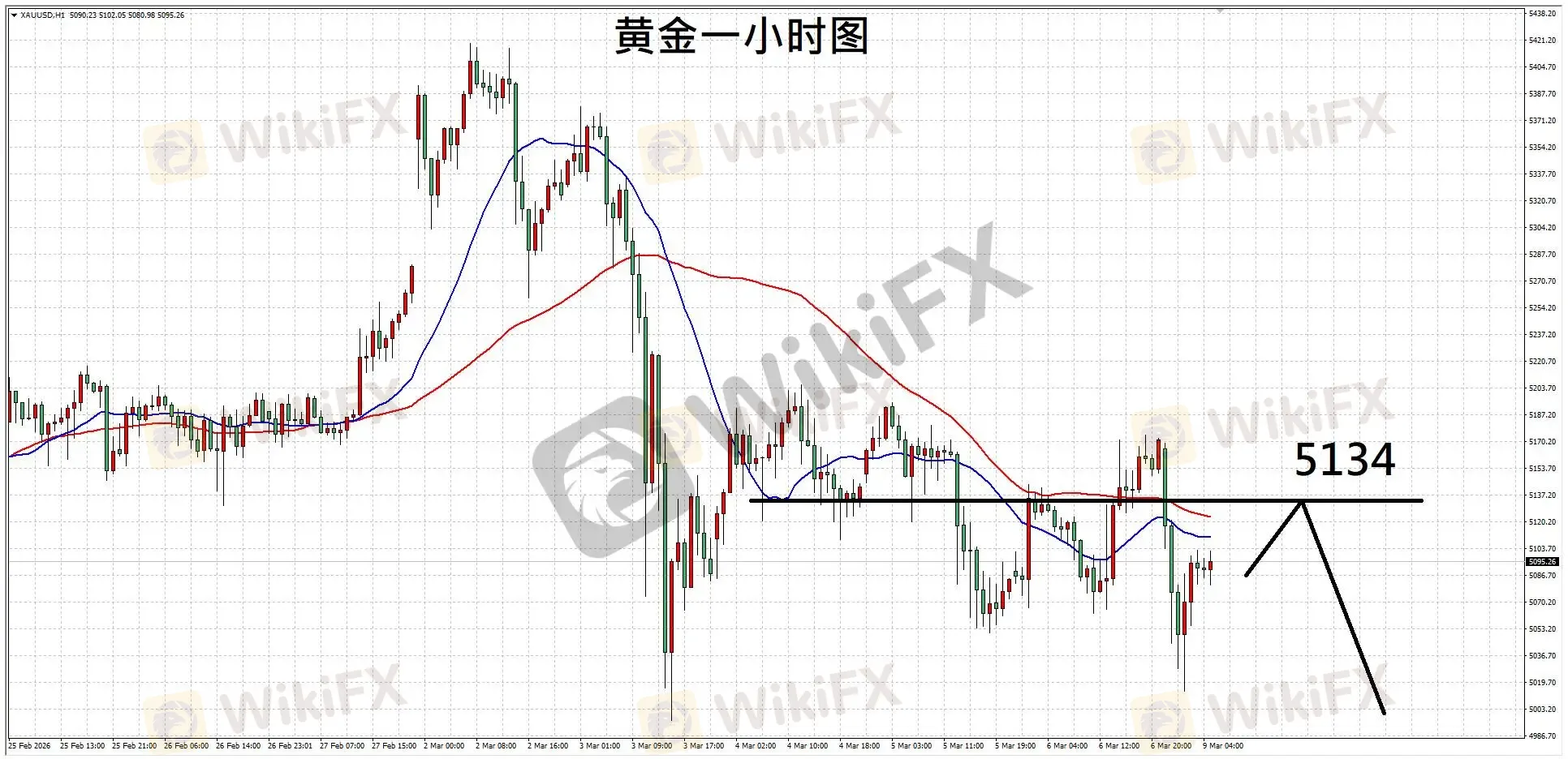 摘要:【基本面分析】上周五美国非农就业数据虽逊于预期,理论上有助增添美联储降息概率,但市场认为在美伊冲突越发剧烈之下,美国相较其余经济体更能抵御油价波动对经济带来的冲击,在美元相对强势下压抑了黄金短线涨幅;不过就后市来看,地缘冲突短期内难以消解,且美国也可能面临停滞性通胀的风险,短期内基本面仍有利多黄金因素,预估后市波动可能较为动荡。【技术分析】黄金一小时图,走势震荡后向下回落,并刷新近期低点,反映卖压