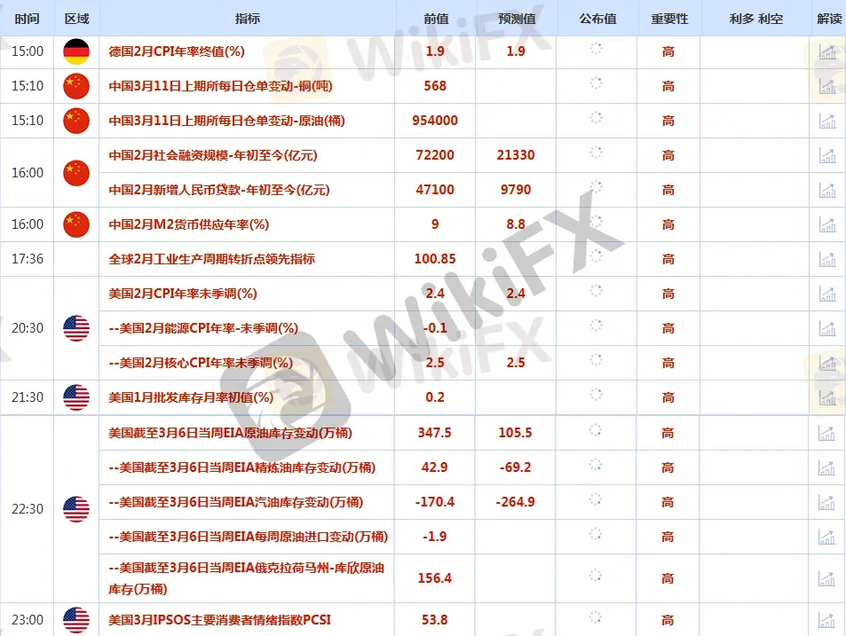 CWGMarkets市场资讯2026年3月11日(周三):