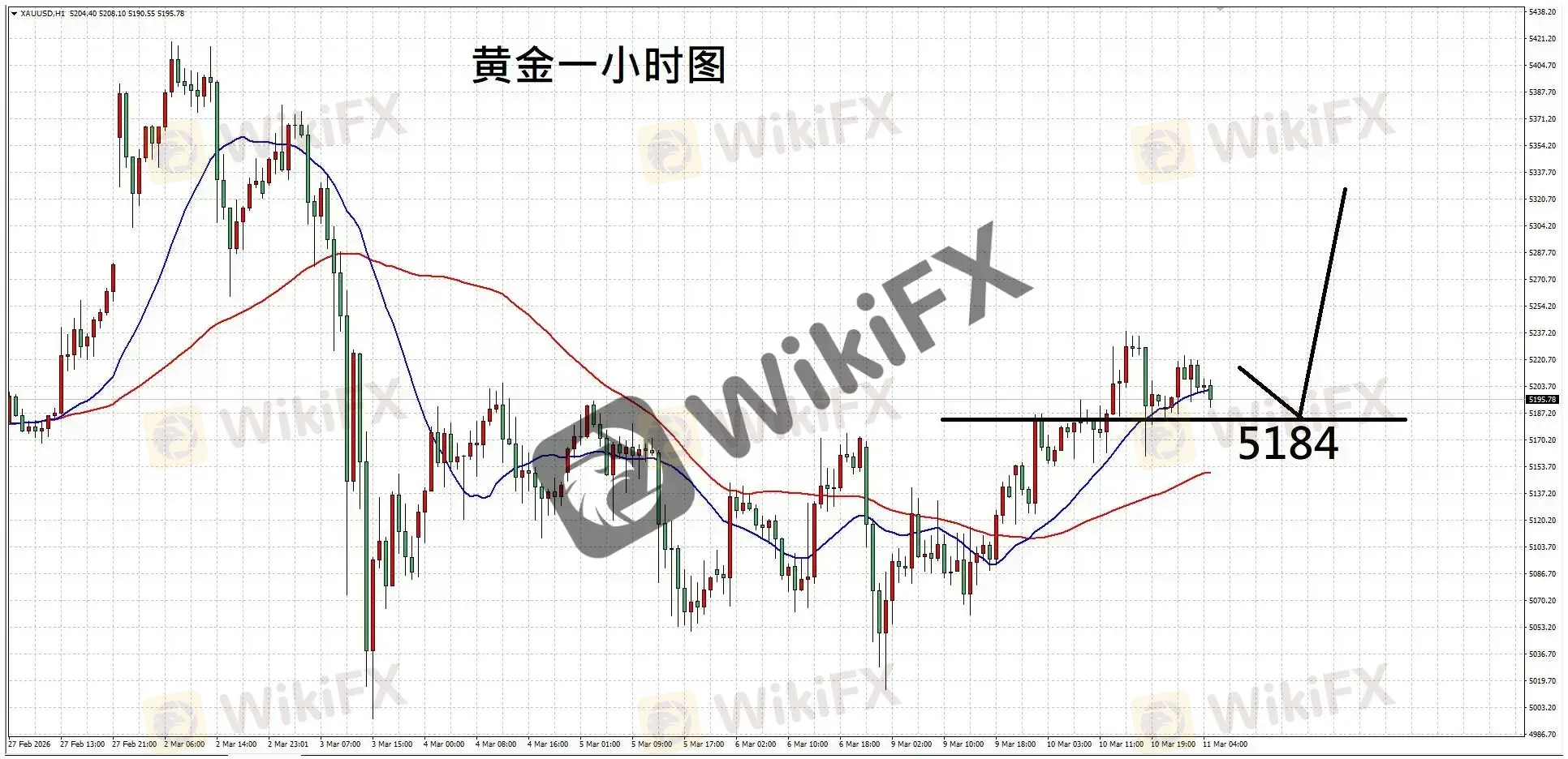 摘要:【基本面分析】以色列外交部长昨日表示,不寻求与伊朗的无止尽战争,将在适当时机与美国协调决定何时结束行动,尽管目前战事尚未完全歇停,但局势降温的走向仍削弱了美元的地缘政治溢价;后市来看,局势结束时间快于预期有助于美联储将通胀上升视作短期现象,倘若今夜美国2月CPU未见明显升势,将有助巩固黄金升势。【技术分析】黄金一小时图,走势震荡后向上突破,并刷新短线高点,反应买盘增强;如后续回落未击破前期支撑,则