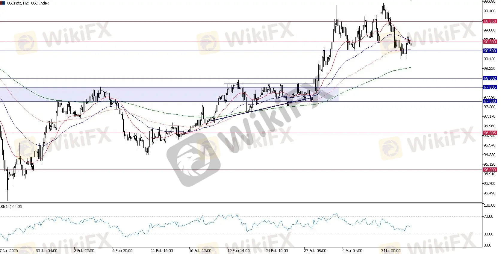 展望:98.60 至 98.80 区域是决定美元看涨结构是否保持完好,或者是否正在酝酿更大级别反转的绝对关键水平。