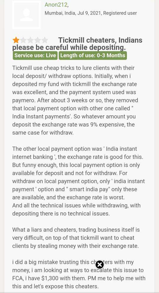收到的投訴Tickmill.