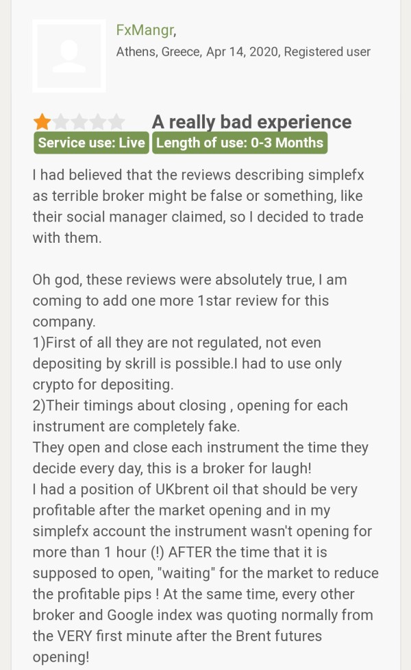 A client has reported that simple fx manipulates trade so that clients do not make profit and when clients make profit simple fx blocks their account. Big scam.