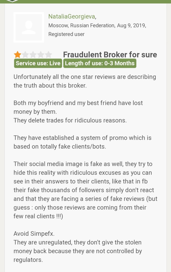 Simple fx has scammed many clients by deleting their trades and making them lose lot of money. They pretend to be a generous broker but their work reflects fraud. They also pay reviewers to give fake positive reviews about themselves.
