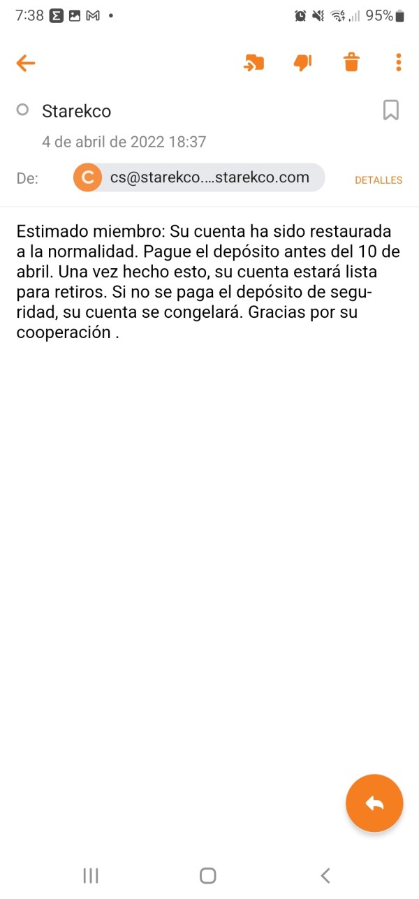 Como ya he expuesto en correos anteriores, dispongo de justificantes de transferencia bancarias a cripto.com y desde ahí mi dinero ca a una dirección wallet de MKNDY y STAREKCO. es imposible retirar dinero de estos bróker fraudulentos. voy a adjuntar más capturas de pantalla para justificarlo. y todo lo necesario para probar este fraude.