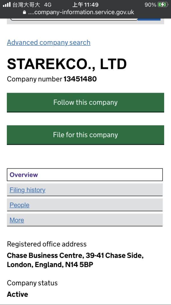 經查英國公司登記公開資訊已確定詐騙交易商Starek 一些明確訊息
