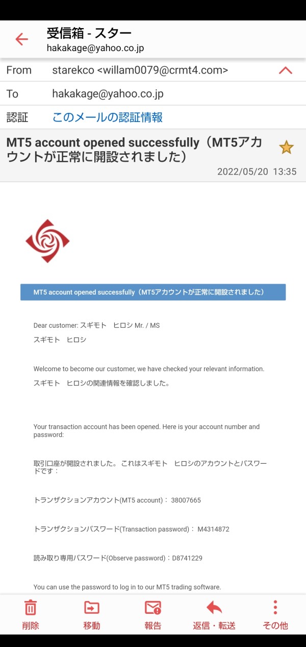 NFAからの要請により口座を凍結するとのメールを会社が送ってきて、ログインも不能とされた。